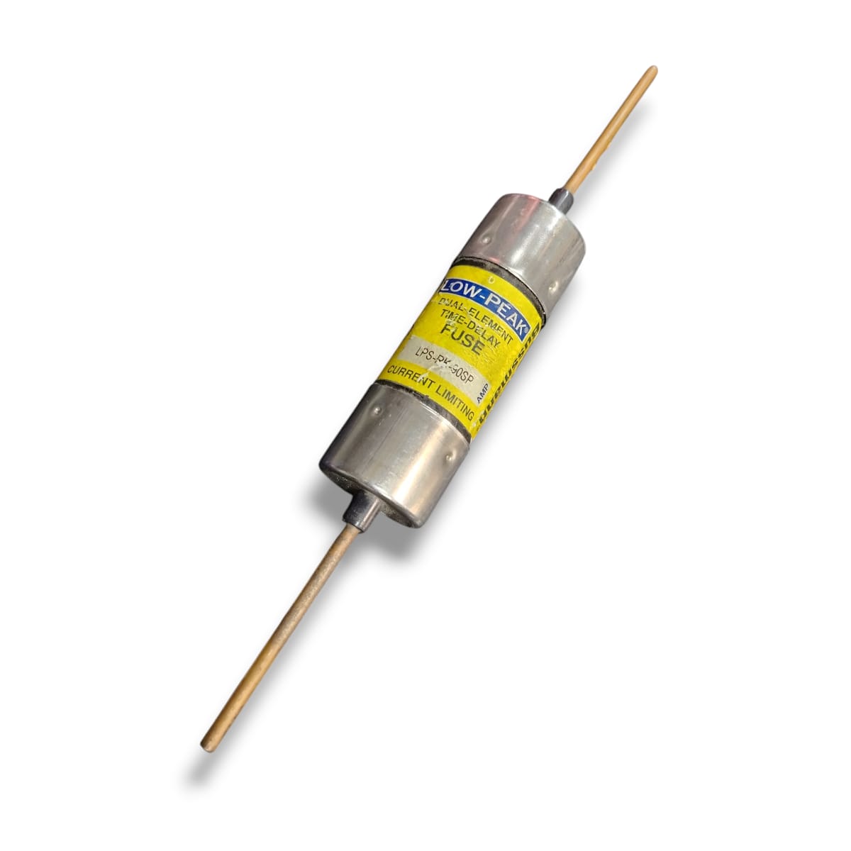 Es un fusible “cartridge” / cuerpo cilíndrico tipo hoja (“blade end”) de la serie LPS-RK de Eaton/Bussmann, de tipo “Low-Peak”, elemento dual, retardo de tiempo (“time delay / dual-element / current-limiting”) diseñado para proteger circuitos contra sobrecorrientes, incluyendo arranques de motores, alimentaciones de transformadores, solenoides, etc.
