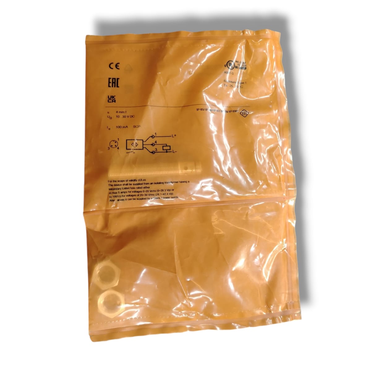 El peso del sensor es de unos 27 gramos. Tiene clase de protección eléctrica III (o equivalente), y su diseño es blindado (shielded), lo que reduce interferencias externas.